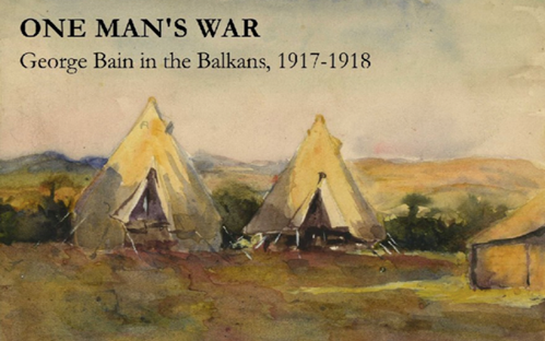 For Doors Open Day 2020 the museum presented an online exhibition, One Man’s War George Bain In The Balkans 1917-1918. 100 years ago this year, Bain joined the British Salonika Force in Macedonia and Bulgaria. The exhibition offered a personal view of life on the Balkan Front during World War I. Initially a draughtsman in the Royal Engineers, Bain soon found his artistic skills put to other uses. He made stage sets and costumes for the army theatre and may have drawn maps of the enemy lines. In his spare time he painted landscapes and local people. He also drew cartoons that poked fun at army life. His pictures show life, colour, and the view of an ordinary soldier in contrast to official accounts of the Balkan Front.