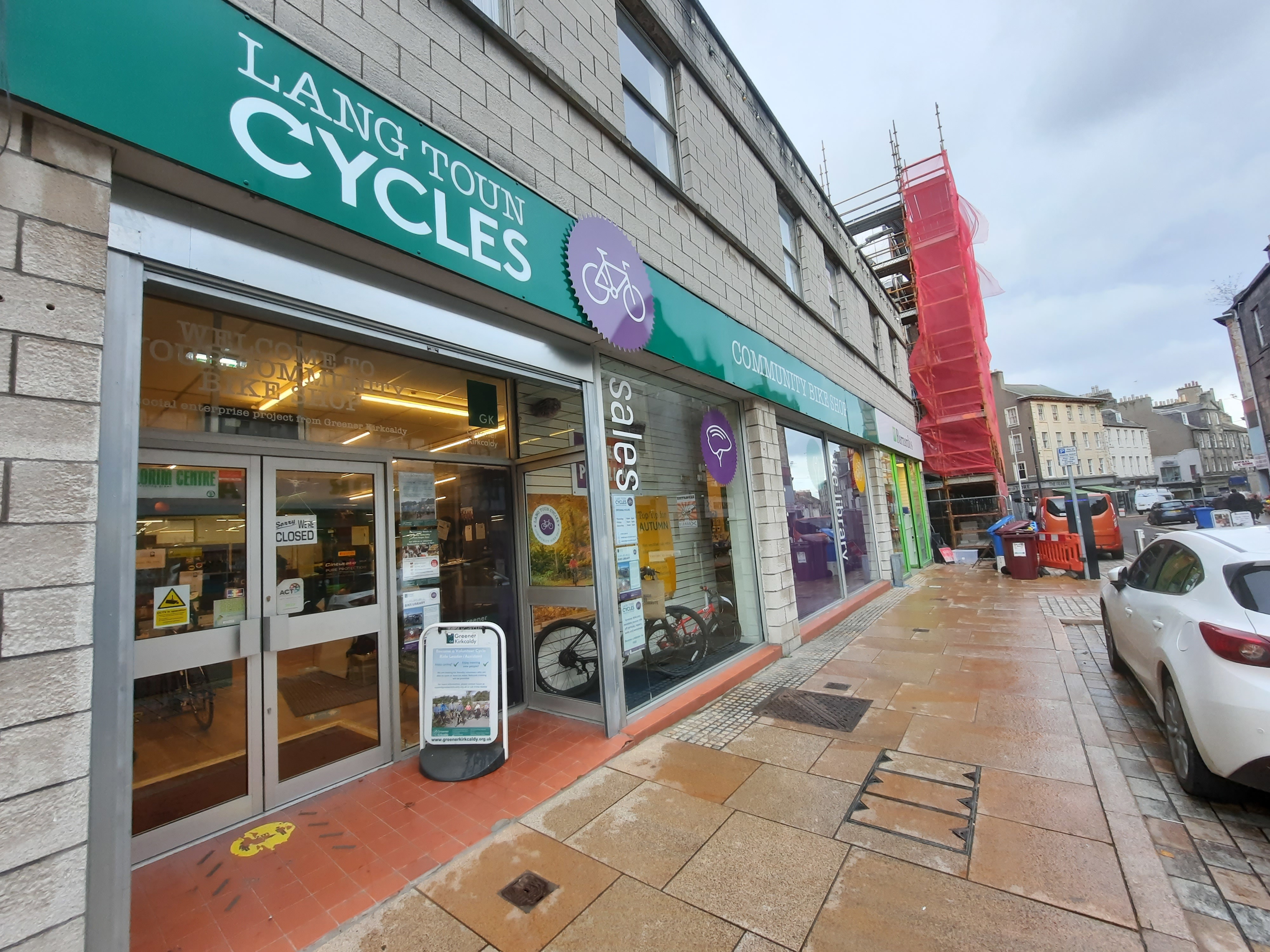 Lang Toun Cycles is a community bike shop in the heart of Kirkcaldy. We’re located on the High Street, opposite the Kirkcaldy Indoor Market. We are a social enterprise.