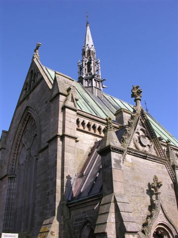 This charming A-Listed building was erected in 1895-7 to a design, by Dundee Architect Thomas Cappon, which reflected a miniature cathedral in 13th Century French style. It has a Caen stone interior and is adorned with gargoyles, and carvings by John Bremner. Enjoy the magnificent views from the hill-top location.